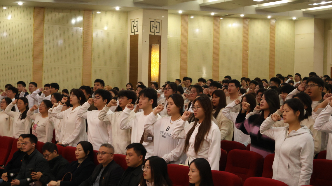 集体宣誓环节,全体新任学生干部高举右拳、庄严宣誓。铿锵有力的誓言回荡现场,凝聚成攻坚克难、勇担使命的集体信念,充分彰显了新时代青年的责任与担当。